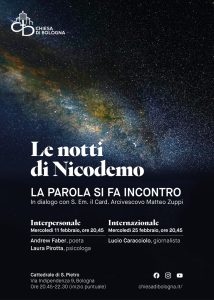 Altre proposte in diocesi, news Ufficio Pastorale Vocazionale 6 Febbraio 2026 «La Parola si fa incontro» Le Notti di Nicodemo 11 e 25 febbraio 2026 in Cattedrale https://www.chiesadibologna.it/le-notti-di-nicodemo-2026/ condividi su